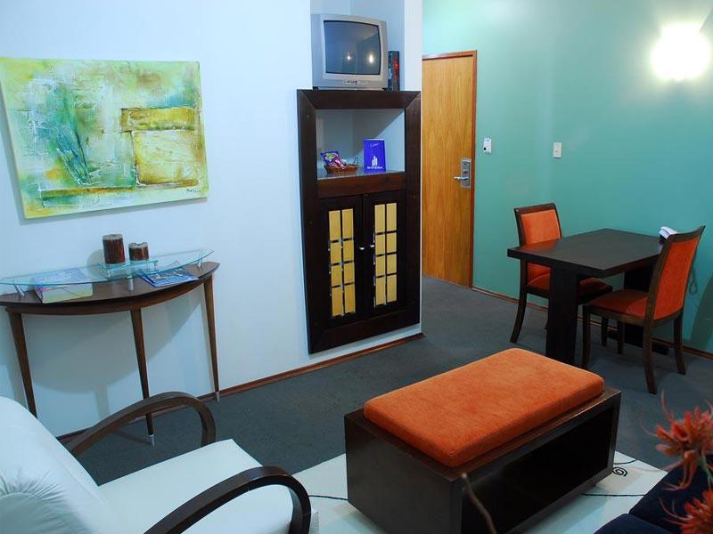 Durante sua estada, você poderá aproveitar de um completo café da manhã cortesia, wi-fi gratuito, além de contar com sauna, piscina, fitness center e estacionamento com manobrista.